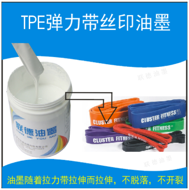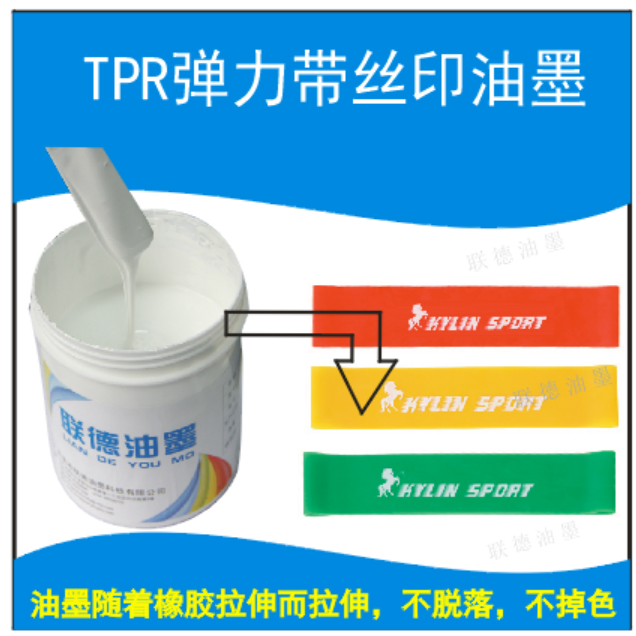 體育用品拉力帶印刷油墨,使用方便,環(huán)保低味,可適用在各種乳膠拉力帶,TPE拉力帶,TPR拉力帶等材質(zhì)表面的印刷,絲印效果穩(wěn)定,移印可選用,附著力優(yōu)異,符合ROHS等環(huán)保標(biāo)準(zhǔn),可來樣品免費測試,也可免費送油墨小樣,貨源充足,全國發(fā)貨。