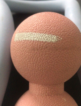 萬麗瓏工程師對(duì)此分析:TPE材料與油墨極性差別大,油墨難以與TPE材料相容,油墨僅僅是粘附到TPE制品表面,而不能滲透到TPE材料內(nèi)部。這樣粘附力自然不夠,容易脫落。