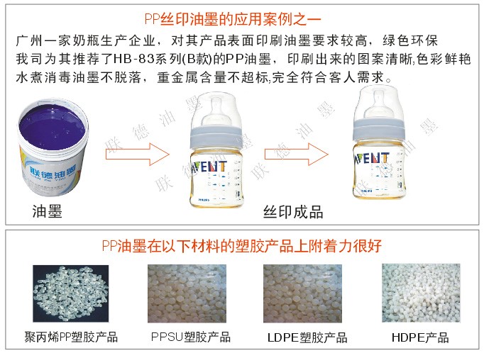 聯(lián)德PP奶瓶絲印油墨介紹: